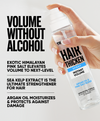Our ultra-light formula instantly thickens hair and boosts all-day volume. Infused with Himalayan Pink Salt, Rice Protein, and Coconut Water, it delivers maximum fullness with zero sticky residue.